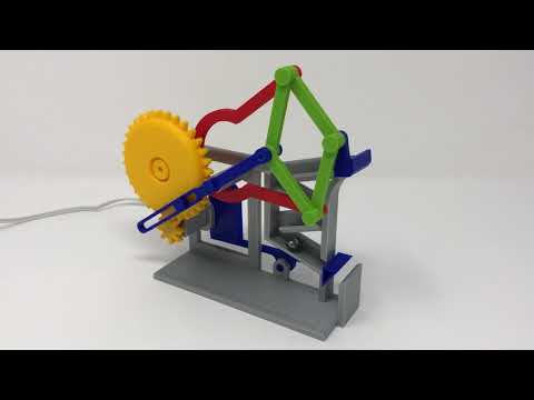 In this model, these combined functions are use to slowly raise a bucket containing a marble (an 8mm ball bearing) to the top of a short, built in, track, dump the marble onto the track, rapidly lower the bucket to pick up the marble at the bottom of the track, and then repeat the process.